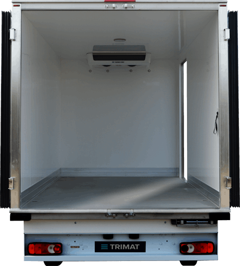- ATP quality “REINFORCED isothermal” refrigerated box, with or without side door. Airtight system made of one-piece molded composite panels (TRIMAT tech & manufacture). Insulating polyurethane core and white antibacterial gel-coat outer walls. Gray corundum floor with front-left drainage.